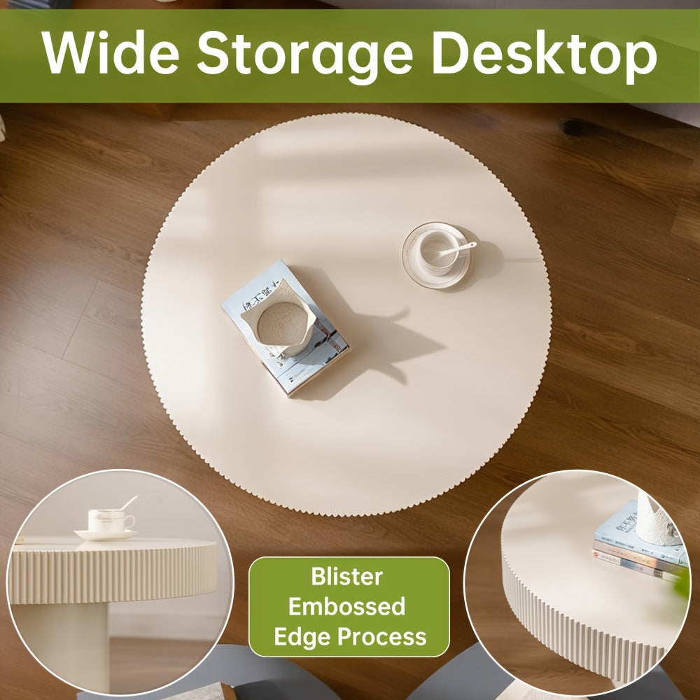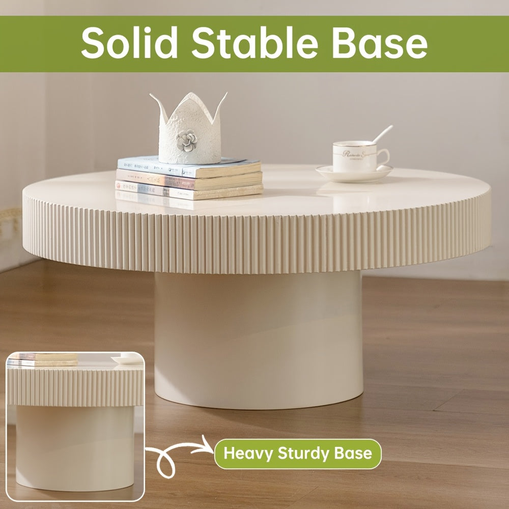 Elegant White Round Drum Coffee Table – Mid-Century Modern Design, Sturdy Circular Pedestal Base with Fluted Edges, Ideal for Living Room or Farmhouse Decor, Farmhouse Coffee Table|Minimalist Design|Sturdy Pedestal Base, Coffee Table for Living Room