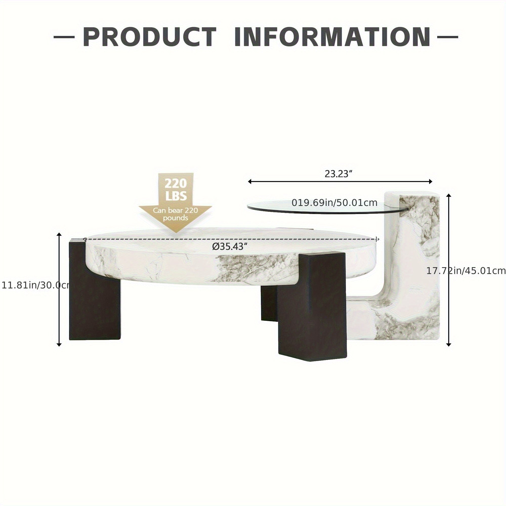 Modern Round Nesting Coffee Tables Set Of 2, Round Coffee Table For Living Room, Coffee Tables With Faux Marble Texture Surface And C-Shaped Side Table, Nesting Coffee Tables For Living Room, Apartment, Bedroom